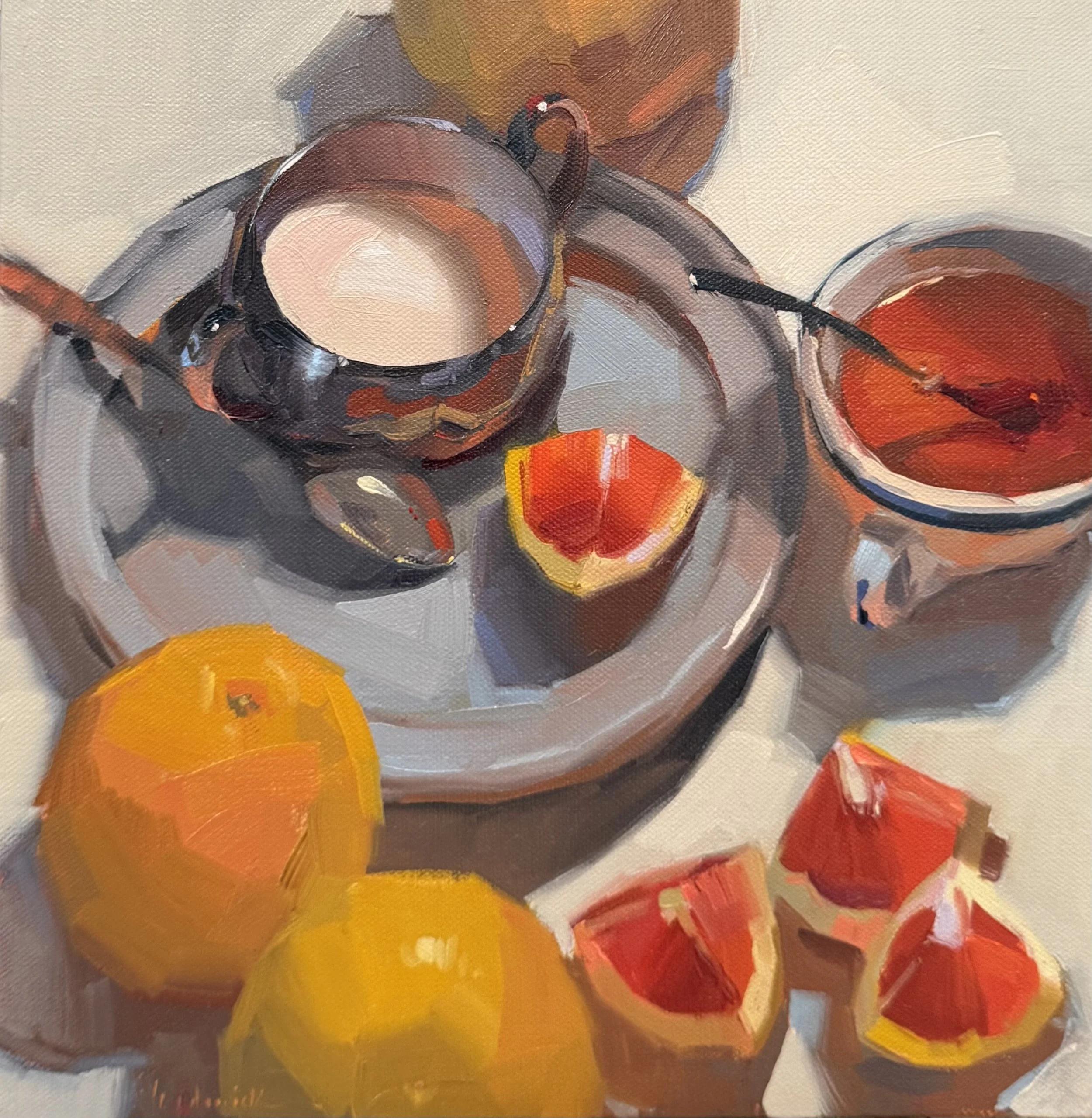 Sarah Sedwick is an oil painter whose still lifes celebrate the beauty of the everyday, inspired by color combinations and perceptual effects. All are painted from life.